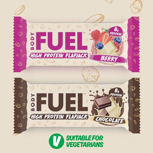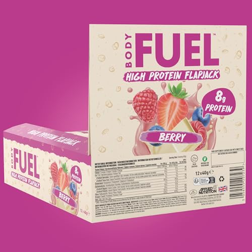 BodyFuel High Protein Flapjack - 8g Protein, Low Sugar, High Fiber Snack for Pre-Workout & Post-Workout Recovery (Berry)(12 x 40g)