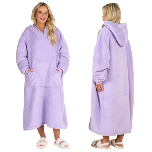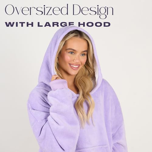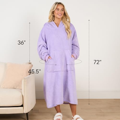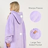 Sienna Extra Long Oversized Blanket Hoodie, Ultra Soft Wearable Throw with Pockets Sleeves Soft Sherpa Fleece Hooded Blanket Giant Sweatshirt, Lilac Purple