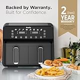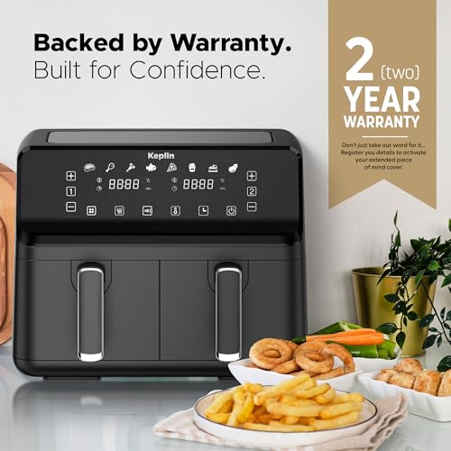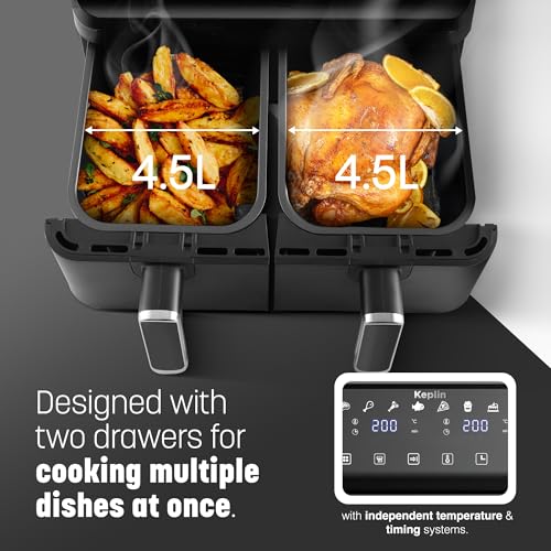 Keplin 9L Dual Zone Air Fryer - 2700W Energy-Saving Cooker with 6 Cooking Functions - Extra-Large Capacity for Healthy Meals - Roast, Bake, Dehydrate, Crisp - Family Size (9L)