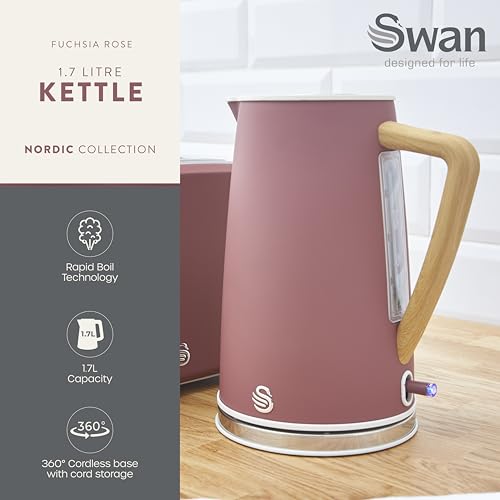 Swan SK14610FUS Nordic Cordless Jug Kettle with Fast Boil Technology, Overheat Protection, Soft Touch Handle, 1.7L, 3KW, Fuchsia Rose, Fusia