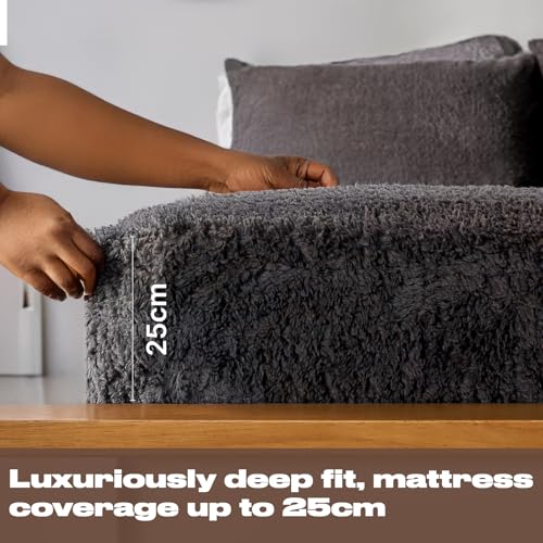 Brentfords Single Teddy Sheet, Fluffy Fleece Fitted Sheet Bed Cover Easy Care Fade Resistant Ultra Soft Bedding Linen Winter Warm Fluffy Fitted Sheet Single Bed - Yellow