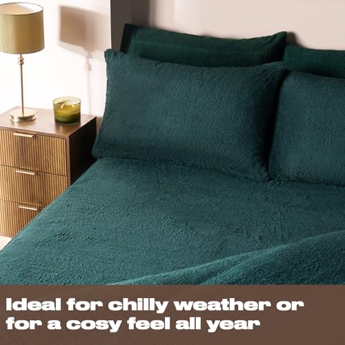 Brentfords Single Bed Sheets, Teddy Fleece Fitted Sheet Bed Cover Easy Care Fade Resistant Ultra Soft Bedding Single Thermal Bedding Fitted Sheet - Forest Green