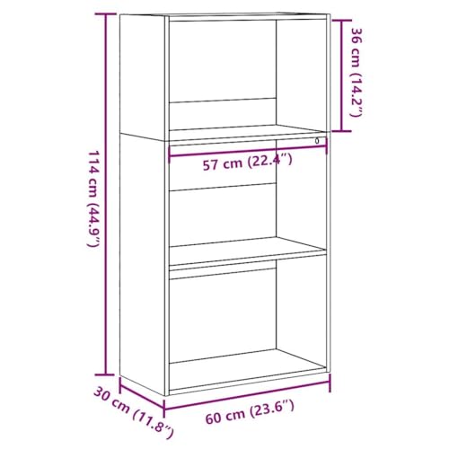 vidaXL Grey Sonoma Bookcase Storage Rack/Freestanding Bookshelf Engineered Wood/Open Compartments for Living Room/Bedroom 60x30x114 cm - Modern Design