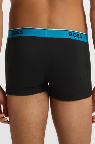 Hugo Boss Mens BOSS 3-Pack Power Boxer Trunks, Black with coloured waistbands - Size: 37/36/32