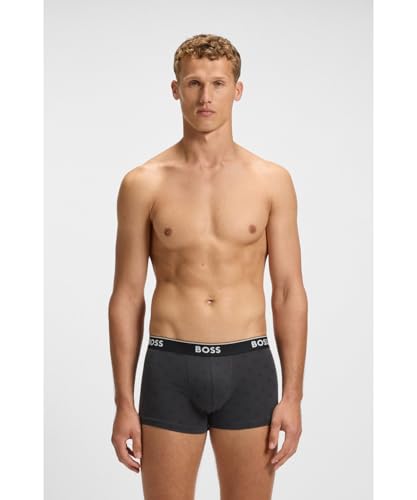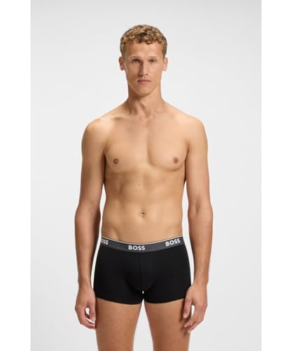 BOSS Mens Trunk 3P Power Desig Three-Pack of Logo-Waistband Trunks in Stretch Cotton