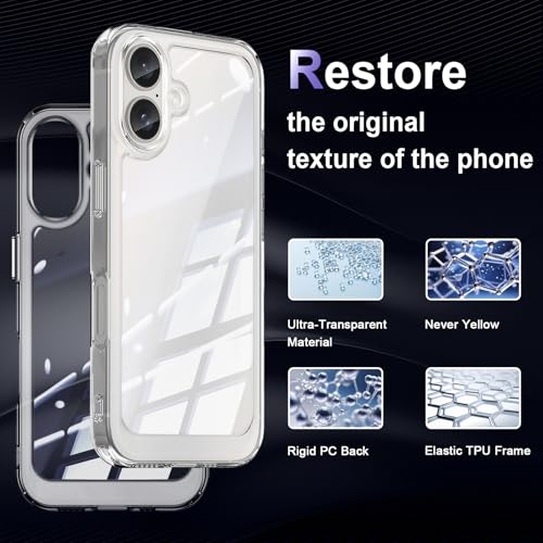 Liisooka Case for iPhone 16, Military Grade Drop Protection Phone Case, Yellowing Resistant, Anti-Scratch Hard PC Back, Shockproof Hard Ultra-Thin Protective Cover, Clear