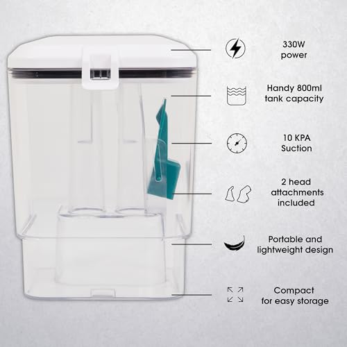 Abode Compact & Lightweight Spot Cleaner Carpet Washer 800ml Water Tank Stain Remover, Cleans Spills from Carpets, Stairs, Upholstery & Car Seats, 330W Power, 2x Attachments, White/Blue ASC24C