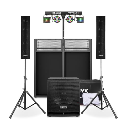 Vonyx VX880BT Complete DJ Setup with Mobile Booth, PartyBar2 Light Bar, 2.1 Speaker System, 15-Inch Subwoofer, Bluetooth, USB/SD Inputs for Events and Parties