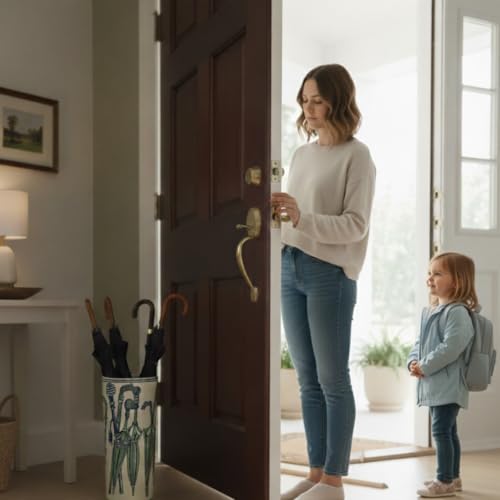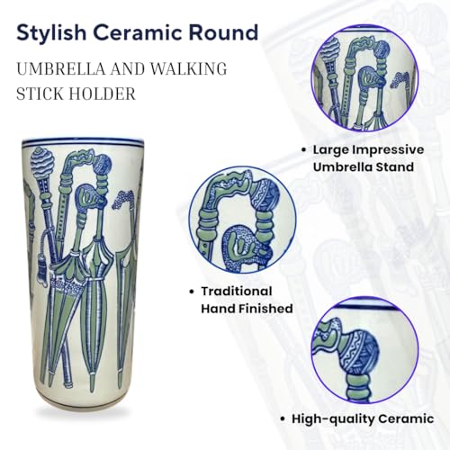 AcaciaHome Durable Ceramic Round Umbrella stand–Perfect Holder for Home, Office, & Entryway - Adds a Sophisticated Touch to Living Spaces for Canes, & Walking Sticks (Green & White Umbrella)