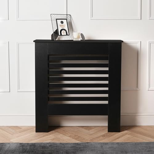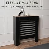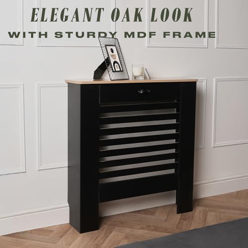 OHS Black Radiator Cover Small, Oak Look Top Stylish Decorative Radiator Cover Wooden Frame MDF for Home Living Room Bedroom & Hallway