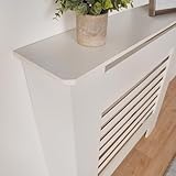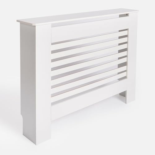 OHS Medium Radiator Cover White, Stylish and Durable Wooden Frame Modern Slatted Design MDF Radiator Cover for Living Room Bedroom or Hallway