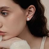 Delicate S925 Silver Heart Pendant Earrings Gift 26 Letter Initial A-Z Stud Erarrings For Women Girls Mum Daughter Sisters Friends Lover Birthday Christmas Party Silver Jewellery (J)