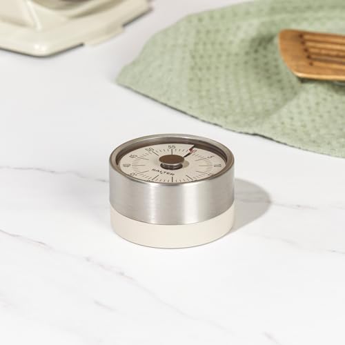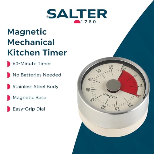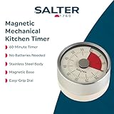 Salter Magnetic Mechanical Timer – Magnetic Base, Attach To Fridges & Ovens, 60- Minute Countdown Markers, No Batteries Needed, Stainless Steel, Perfect for Baking & Cooking, Easy Turn Dial, Soft Grip