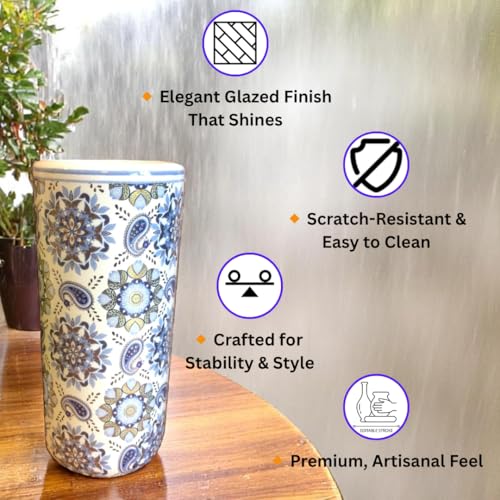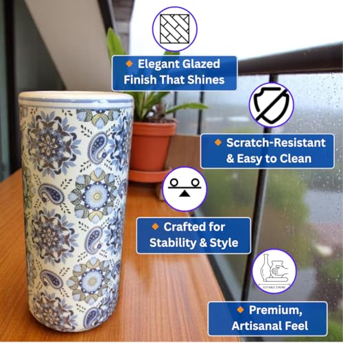 AcaciaHome Durable Ceramic Round Umbrella stand–Perfect Holder for Home, Office, & Entryway - Adds a Sophisticated Touch to Living Spaces for Canes, & Walking Sticks (Ceramic Multicolour)