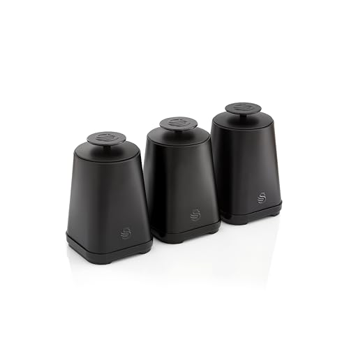 Swan Stealth Black Tea Coffee Sugar Canisters Storage Set SWKA18521BLKN