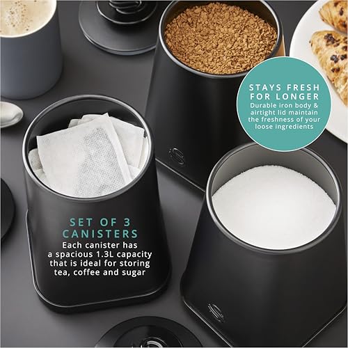 Swan Stealth Set of 3 Storage Canisters for Coffee/Sugar/Tea, Airtight Lids, 1.3L, Black