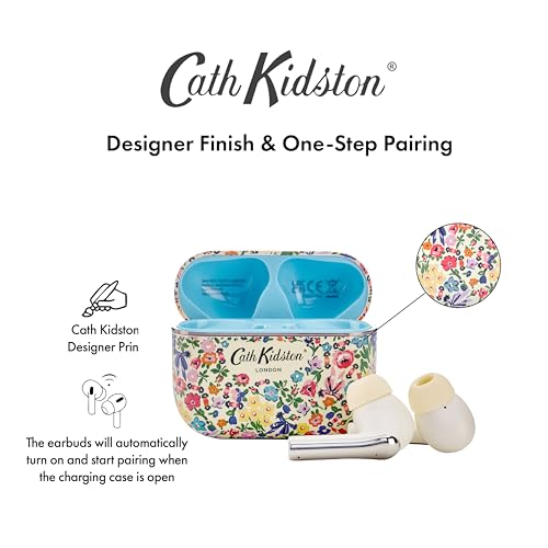 Cath Kidston TWS Wireless Earbuds by VQ - Skylark Wireless Earphones with Bluetooth 5.4, HD Mic & ENC Noise Cancelling - 40H Backup Rechargeable Ear buds Compatible with iOS & Android - Ditsy