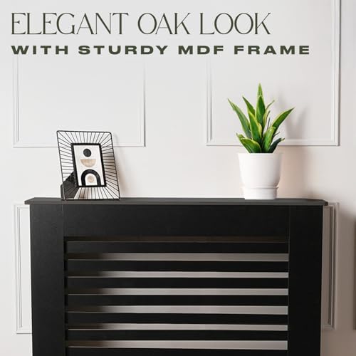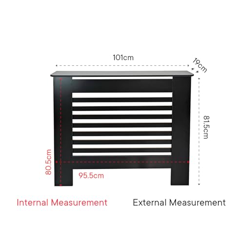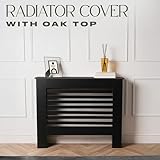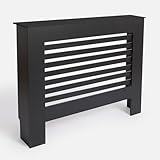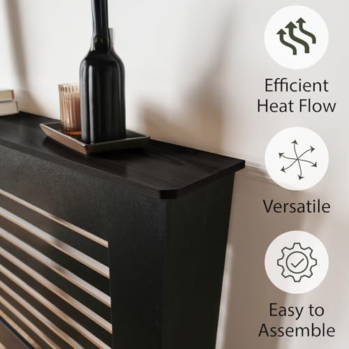 OHS Black Radiator Top Cover Shelf, Stylish Wooden Frame Slatted Design Decorative Easy Fit Black Radiator Shelf for Living Room Bedroom or Hallway, Medium
