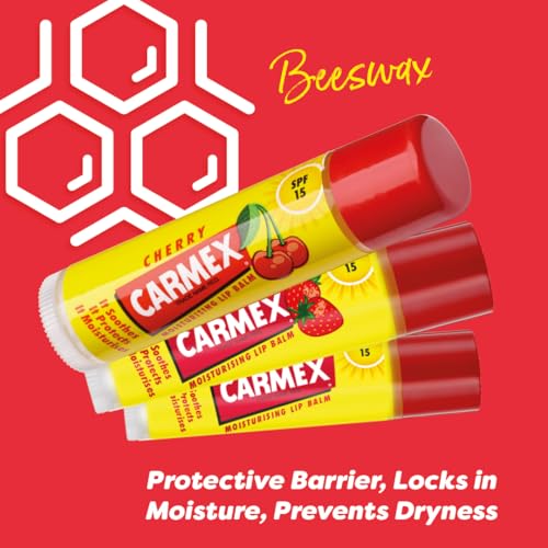 Carmex Lip Balm Tube Set | Classic, Cherry & Strawberry | SPF 15 | Soothes & Protects Dry Lips | Hydrating Formula for Summer | Travel-Friendly | Pack of 3