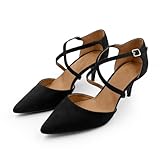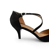 Womens Court Shoes Ankle Strap Low Kitten Heel Shoes Ladies Comfort Plus Large Size Wedding Evening Party Classic Work Shoes Black Faux Suede