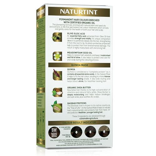 Naturtint Permanent Hair Colour Gel 5W Radiant Medium Brown, Plant Enriched, Biobased, Ammonia Free, Long Lasting Grey Coverage and Radiant Colour, Nourishment and Protection