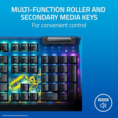 Razer BlackWidow V4 X - Fortnite Edition Mechanical Gaming Keyboard with RGB (Yellow Switches, 6 custom macro keys, Doubleshot ABS keycaps) QWERTY US-Layout | Fortnite