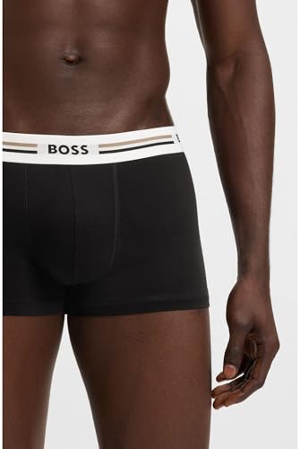 Hugo Boss Mens BOSS Orange 3-Pack Mens Stretch-Cotton Trunks with Logo Waistbands - Black 001 - Size: 33/32/32