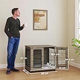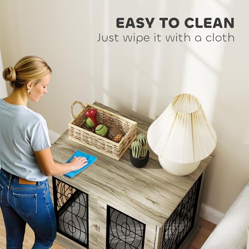 PawHut Dog Crate Furniture, Dog Cage with Soft Washable Cushion, Furniture-Style Pet Kennel Indoor House End Side Table for Small Medium Breeds, 80 x 56 x 63 cm, Grey