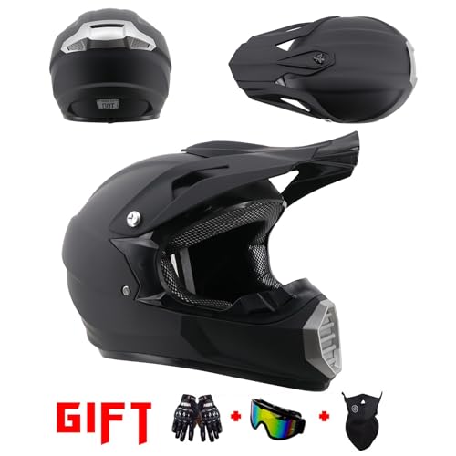 Youth Motocross Offroad Street Dirt Bike Helmet, Adult Full Face Motorcycle ATV Helmets MTB BMX MX Street Bike Helmet, Motorbike Downhill Off Road Crash Helmet, With Goggles Gloves Mask(Size:S(52-53CM