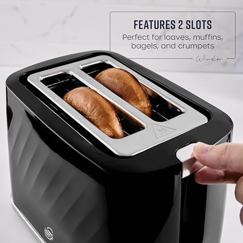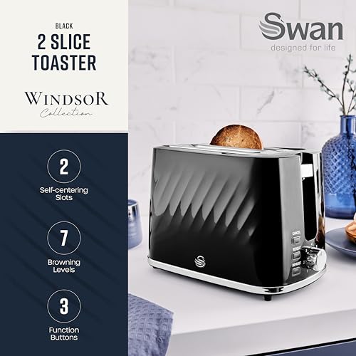 Swan ST14071BLK Windsor 2 Slice Toaster with 7 Browning Levels, Defrost/Reheat/Cancel Functions, Self-Centring Functions and Removable Crumb Tray, 900W, Black