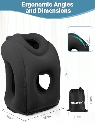 Maliton Inflatable Travel Pillow for Airplane Comfortable Sleeping to Relieve Neck and Shoulder Pain, Support Head Inflatable Pillow for Long Flights, Used for Airplanes, Cars, Trains, Office(Black)