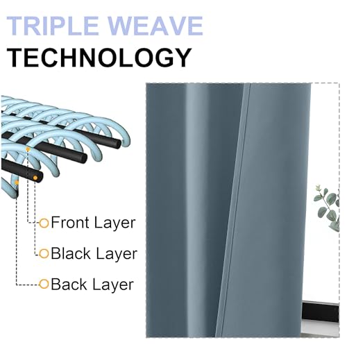 Simplebrand Ava Stone Blue Blackout Curtains for Bedroom 84 Inch Length 2 Panels Set, Solid Thermal Insulated Privacy Living Room Window Treatment Curtains Blackout Drapes, W40 x L84 Inch, Stone Blue