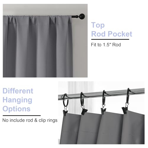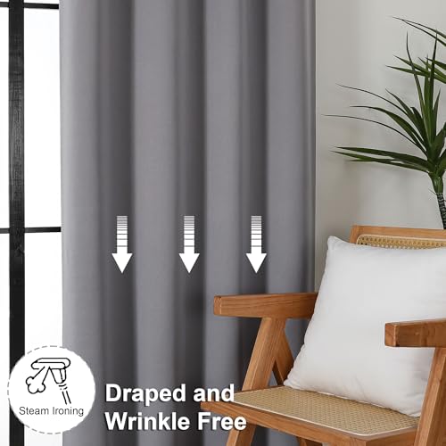 Simplebrand Ava Light Grey Blackout Curtains for Bedroom 63 Inch Length 2 Panels, Solid Thermal Insulated Energy Saving Rod Pocket Window Treatment Curtains Blackout Drapes, W40 x L63 Inch, Light Grey