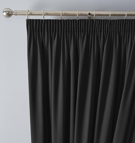Fusion Dijon Cotton Thermal Pencil Pleat Curtains - Black