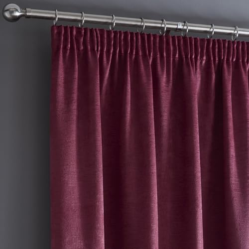 Fusion Wine Red Pencil Pleat Curtains W46 x L72 (117 x 183cm) – 100% Cotton Thermal & Soundproof Drapes – Claret Window Treatment for Bedroom – 2 Panels – Sorbonne Collection