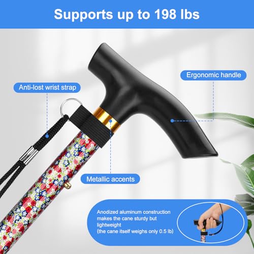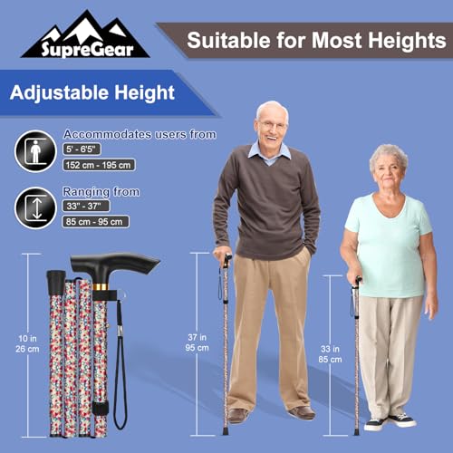 supregear Walking Stick - Adjustable Folding Walking Sticks for Women and Men - Lightweight Portable Collapsible Balancing Aid - Foldable Travel Cane for Ladies Elderly Adults, White Dense Blossoms