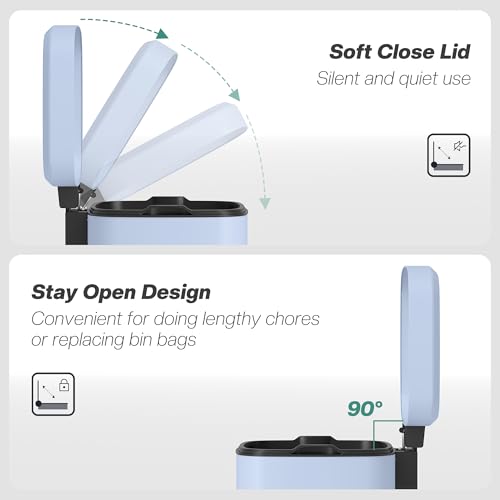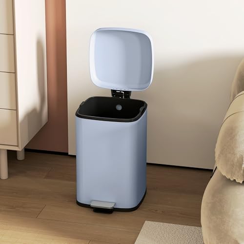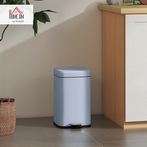 HOMCOM Kitchen Pedal Bin, Metal Rubbish Bin with Soft-close Lid in Light Blue Size: Medium Light Blue Medium