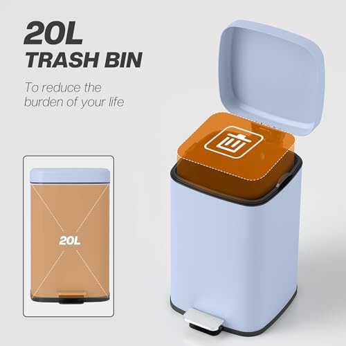 HOMCOM 20 Litre Pedal Bin, Fingerprint Proof Kitchen Rubbish Bin with Soft-close Lid, Foot Pedal and Removable Inner Bucket for Recycling and Waste, Light Blue
