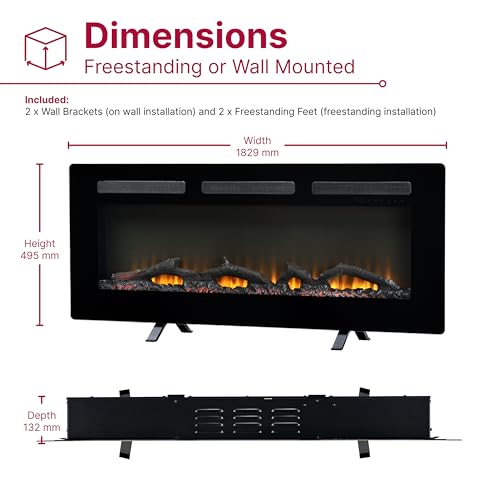 Dimplex Sierra Optiflame Media Wall Fireplace, 72"/182.9cm, Wall Mount, Recess Fit, Free Standing Electric Fire, 7 Colour Themes, Choice of Fuel Beds, Cool Touch Glass, 1.6kW Electric Heater