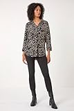 Roman Womens Abstract Print Stretch Jersey Shirt in Black | Size: 10