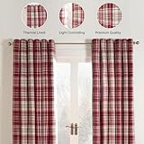 OHS Red Eyelet Curtains for Living Room Bedroom, Soft Luxury Dorset Woven Check Blackout Thermal Curtains Decorative Fully Lined Curtain for Window Treatment 2 Panel, 66" x 72"