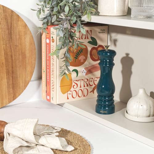 Salter Chester Single Salt & Pepper Mill – Adjustable Ceramic Grind, Fine to Coarse Grinding, Refillable, Extra Cap Included, Can Be Used for Salt Or Pepper, Twist to Grind, High Gloss Acrylic, Green