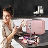 JLY Premium Makeup Travel Case + Small Cabin Suitcase 2 Pcs Set, 100% German Covestro Polycarbonate, Excellent Organisation & Wet/Dry Separation, Cosmetic Organiser & 4 Wheel Hand Luggage - Rose Pink