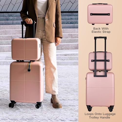 JLY 2-Piece Travel Set: Cabin Suitcase & Makeup Case, PC, TSA Lock, Wheels in Light Pink Size: 2 Pack Light Pink 2 Pack