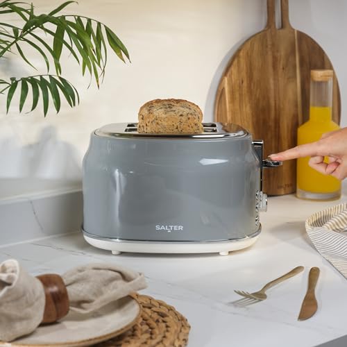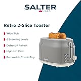 Salter Retro Grey 2-Slice Toaster - Wide Slots, 6 Browning Levels, Defrost, Reheat & Cancel, High-Lift Eject, Removable Crumb Tray, Self-Centring, Anti-Jam Function, For Bagels, Vintage Design, 815W