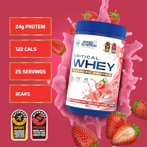 Applied Nutrition Critical Whey Protein Powder – 24g Protein per Serving, High Protein Powder, Protein Shake with BCAAs & Glutamine – Muscle Growth & Recovery (825g - 25 Servings) (Strawberry)