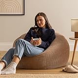 icon Kingston Cord Bean Bag, Mocha Brown, Large Adult Bean Bag Chair with Filling Included, Comfy Chair, Pouffe Footstool, Living Room Furniture, Bedroom Furniture