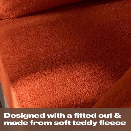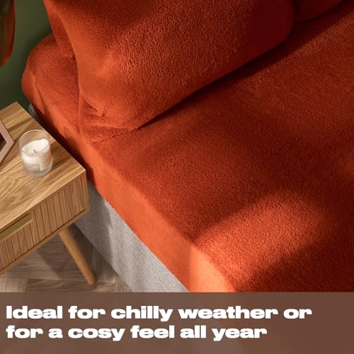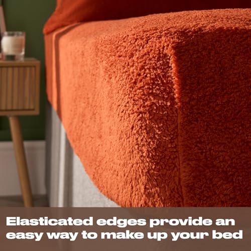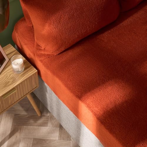 Brentfords Teddy Fleece Fitted Sheet, Easy Care Soft Warm Thermal Single Fitted Sheet Deep Pocket 25cm Shrinkage & Fade Resistant Teddy Bear Bedding, Rust