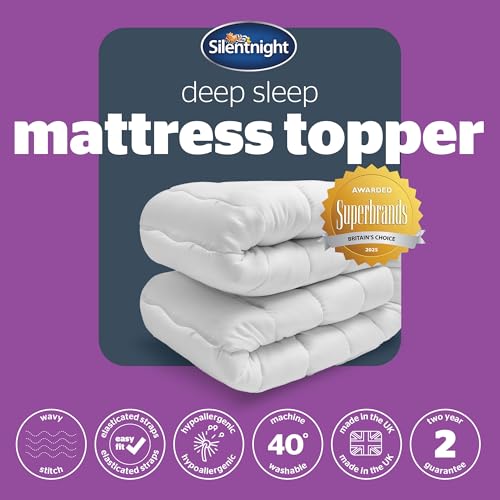 Silentnight Deep Sleep Luxury Mattress Topper - Soft Supportive Comfortable Durable Bed Topper with Easy Fit Elasticated Straps - Quilted Wavy Stitch Cover - Hypoallergenic & Machine Washable, King