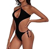 SHERRYLO Cut Out One Piece Swimsuit for Women Sexy Thong Monokini Womens 1 Piece Bathing Suit Thongs Swimsuits Tanga Swimwear, 23038-black, Medium